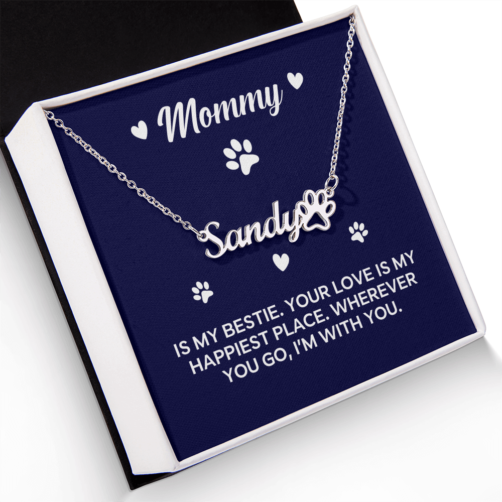 Celebrate the love you share with your fur baby with our beautiful Name Paw Print Necklace. Thoughtfully designed, this piece lets you carry their name close to your heart while honoring the bond thatâs pure and unconditional. Perfect as a giftâor a keepsake for yourselfâitâs a timeless reminder that our pets are family too.