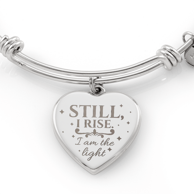 The Still, I Rise Engraved Heart Bangle is a timeless keepsake designed to honor resilience, self-love, and inner power — a beautiful reminder worn close every day.